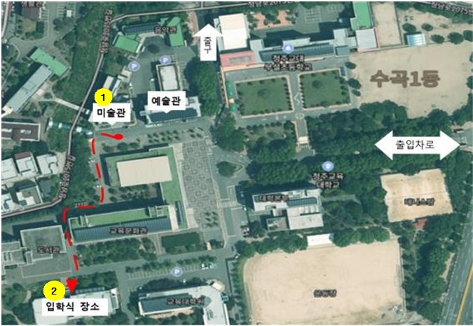 ①입학식 장소로 준비물을 가지고 참석 ②준비물을 지정된 자리에 두고 지정된 자리에 착석 ③학생은 강사의 인솔에 따라 강의실로 이동, 보호자께서는 간담회 참석 |