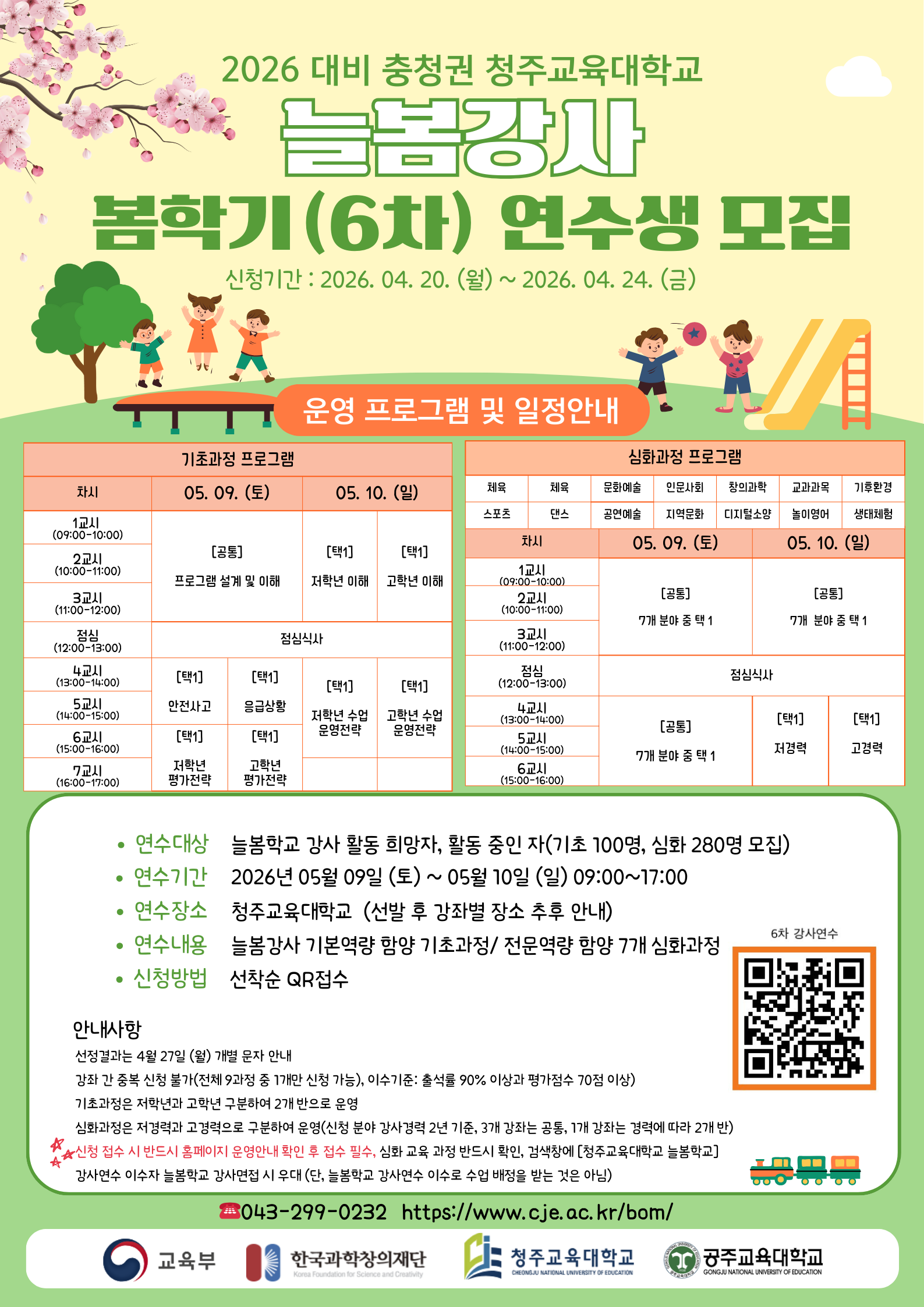 ※ 수강신청마감: 26. 4. 10.(금) 17시(5차 연수) / 26. 4. 24.(금) 17시(6차 연수)