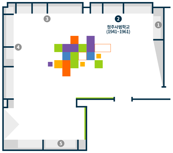 조선교육령 개정으로 1941년 (관립)청주사범학교가 개교하였고, 대한민국 정부 수립 후 1950년 법령 공포에 의해 국립사범학교로 변경되었다. 이곳에는 1940년의 수험표와 졸업증서 및 앨범 등 총 24점의 유물들이 전시되어 있어 관람객들은 청주사범학교 시기의 각종 행사와 졸업생들의 모습을 확인해 볼 수 있다.
